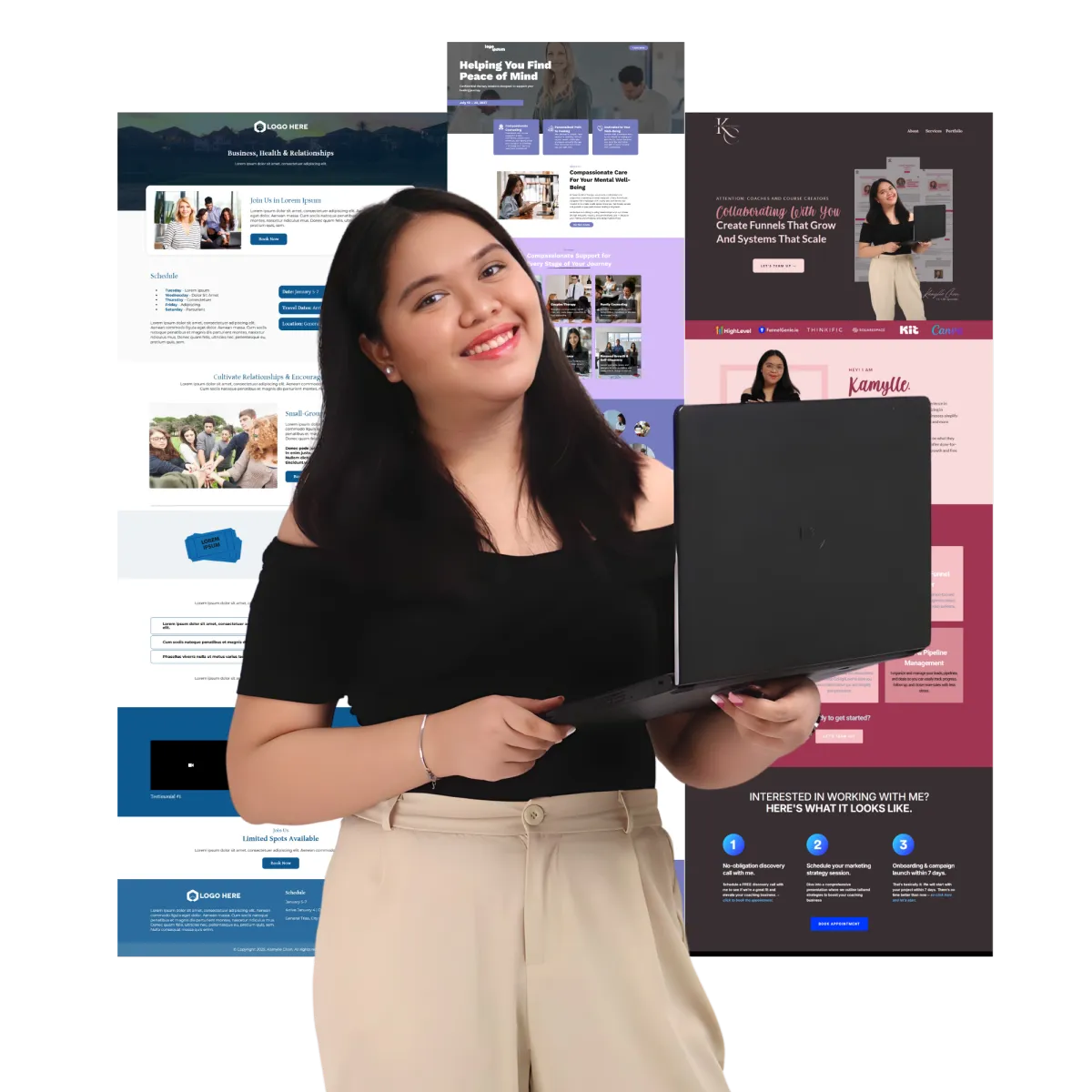 Think of me as your behind-the-scenes partner. I’ll set up your funnels, automate your reminders, and streamline your business so you can finally focus on doing what you love (and actually enjoy running your business again!).